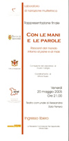 Dopo il successo della rappresentazione teatrale “DA LA’ A © QUI . Storie di viaggio di ragazze e ragazzi”, andata in scena sabato 7 maggio ad Acqui, come momento conclusivo del Laboratorio condotto da Laura Bombonato con gli studenti dell’Istituto d’Arte, venerdì 20 maggio, al Teatro Comunale di Alessandria, sala Ferrero, si potrà assistere a CON LE MANI E LE PAROLE. Racconti dal mondo intorno al pane e al mais.