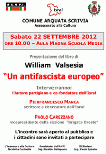 Ad apertura dell’anno scolastico il 22 settembre, alle ore 10, ad Arquata Scrivia, nell’Aula Magna della Scuola Media, l’occasione di ascoltare William Valsesia comandante partigiano, cofondatore del nostro Istituto, al centro dell’incontro la sua pubblicazione Un antifascista europeo (collana Isral Le Mani)