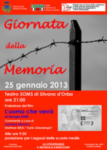 In occasione della Giorno della Memoria 2013 venerdì 25 gennaio 2013 alle ore 21.00 a Silvano d’Orba presso il Teatro SOMS proiezione del film L’uomo che verrà di Giorgio Diritti.