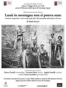Sabato 4 maggio, a Cantalupo Ligure (Palazzetto dello Sport), alle ore 17.00, presentazione del libro “Lassù in montagna non si poteva stare” di Paolo Ferrari, edito dall’associazione Musa con il patrocinio dell’Isral.
