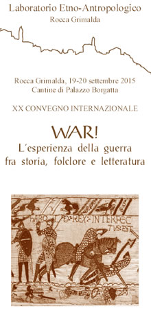 Sabato 19 e domenica 20 settembre 2015, nelle Cantine di Palazzo Borgatta a Rocca Grimalda (AL), si svolge il XX Convegno Internazionale di studio, organizzato dall’Istituto per la storia della Resistenza e della società contemporanea in provincia di Alessandria e dal Laboratorio Etno-Antropologico di Rocca Grimalda, in collaborazione con le Università di Genova e del Piemonte Orientale, dal titolo “WAR! L’esperienza della guerra fra storia, folclore e letteratura”.