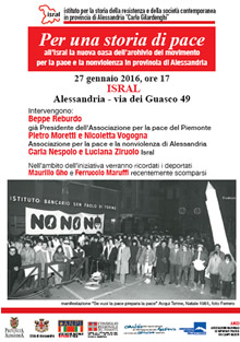 Mercoledì 27 gennaio alle ore 17.00 presso l’Isral in via Guasco 49 Alessandria “Per una storia di pace. All’Isral la nuova casa dell’archivio del movimento per la pace e la nonviolenza in provincia di Alessandria”