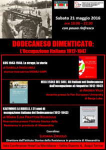 Sabato 21 maggio dalle ore 18.00 alle ore 22.30 con pausa rinfresco l’incontro “Dodecaneso dimenticato: L’Occupazione Italiana 1912-1947” ad Acqui…