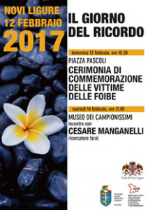 In occasione del Giorno del Ricordo il 12 febbraio alle ore 10.30 a Novi Ligure in piazza Pascoli Cerimonia di Commemorazione delle vittime delle foibe.