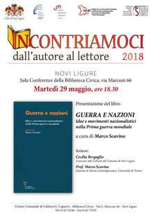 Martedì 29 maggio alle ore 18.30 a Novi Ligure presso la Sala conferenze della Biblioteca Civica in via Marconi 66 presentazione del libro “Guerra e nazioni. Idee e movimenti nazionalistici nella Prima guerra mondiale” a cura di Marco Scavino.