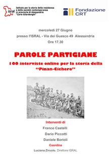 Mercoledì 27 giugno, alle ore 17,30, presso il nostro Istituto, verrà presentato il riordino, curato dal prof. Dario Piccotti, del fondo sonoro della Divisione Garibaldi “Pinan- Cichero” che raccoglie le interviste ai partigiani della formazione realizzate alla fine degli anni Ottanta.
