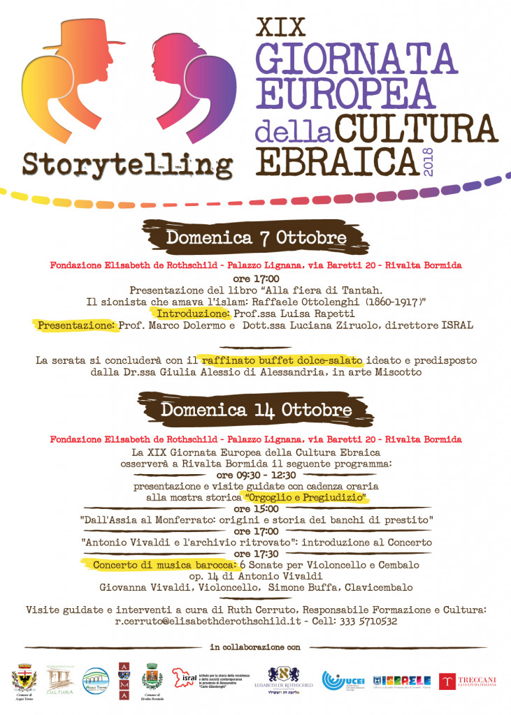 Domenica 7 ottobre, alle ore 17,00, presso la Fondazione Elisabeth de Rothschild a Rivalta Bormida – Palazzo Lignana – all’interno delle iniziative della XIX giornata europea della cultura ebraica verrà presentato il volume di Marco Dolermo Alla fiera di Tantah. Il sionista che amava l’Islam: Raffaele Ottolenghi (1860- 1917).