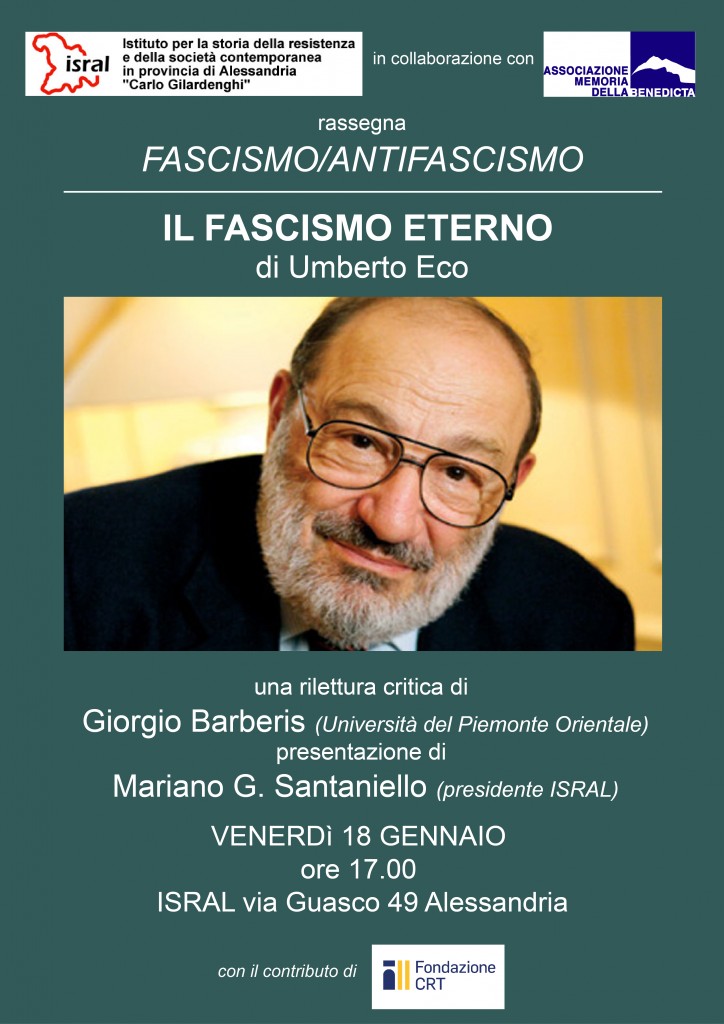 - Il fascismo eterno di Umberto Eco, in una rilettura critica di Giorgio Barberis (Università del Piemonte Orientale), presentazione di Mariano Santaniello (Presidente Isral).