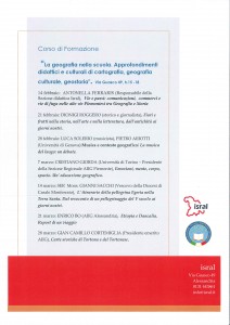 L’Associazione Italiana Insegnanti di Geografia, sez. di Alessandria e l’ISRAL (Istituto per la storia della resistenza e della società contemporanea in provincia di Alessandria “Carlo Gilardenghi”) propongono il corso di formazione “La geografia nella scuola” per gli insegnanti delle scuole di ogni ordine e grado.