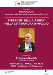 Mercoledì 27 marzo, Francesco Surdich, dell’Università di Genova, parlerà di Stereotipi dell’alterità nella letteratura di viaggio