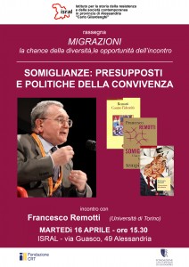 Martedì 16 aprile, Francesco Remotti, dell’Università di Torino, parlerà di Somiglianze: presupposti e politiche della convivenza.
