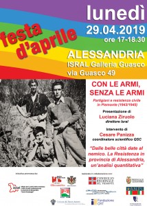 L’esposizione sarà presentata da Luciana Ziruolo, Direttore Isral; a seguire, un intervento di Cesare Panizza, Coordinatore scientifico di QSC: Dalle belle città date al nemico. La Resistenza in provincia di Alessandria, un’analisi quantitativa.