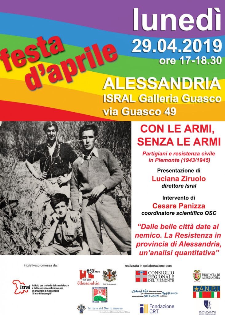 L’Isral si unisce alle celebrazioni per il 25 aprile con una propria iniziativa che si inaugura il 29 aprile prossimo alle ore 17 nella Galleria Guasco (via Guasco 49): la mostra Con le armi, senza le armi. Partigiani e società civile in Piemonte (1943-1945).