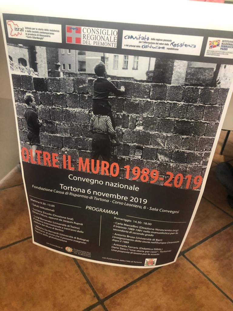 Successivamente è in preparazione il convegno nazionale di didattica della storia Oltre il Muro:1989-2019, che si terrà a Tortona presso la Sala Convegni della Fondazione Cassa di Risparmio di Tortona, mercoledì 6 novembre p.v. dalle ore 9,30 alle 18,00.