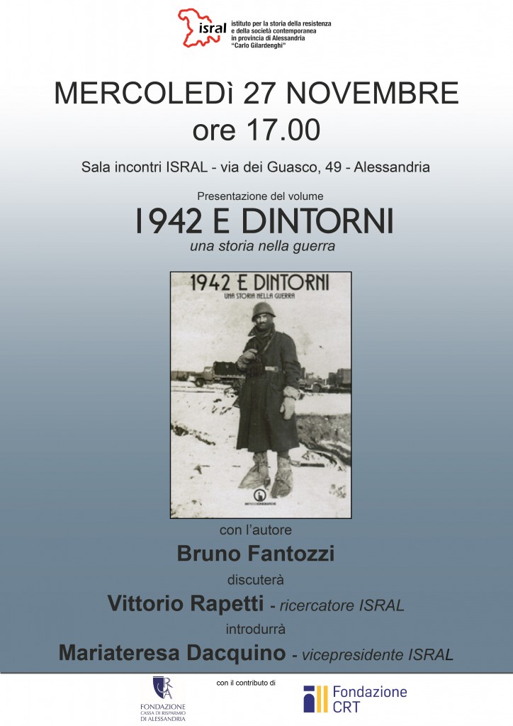 Mercoledì 27 novembre alle ore 17, presso l’Isral, in via dei Guasco 49, sarà presentato il libro di Bruno Fantozzi 1942 e dintorni ( Acqui Terme, 2015).