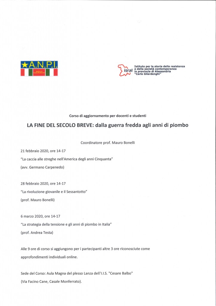Il corso si terrà a Casale Monferrato presso l’Aula Magna del plesso Lanza del Liceo Balbo (Via Facino Cane, Casale Monferrato), dalle ore 14 alle ore 17.