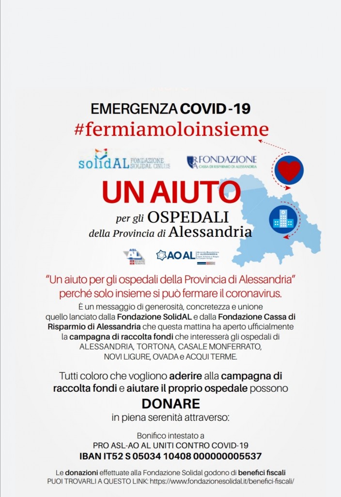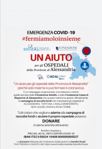 L’Isral, Consorzio pubblico di Enti locali, impegnato nella promozione del territorio alessandrino, in questo tempo di straordinaria difficoltà dovuto all’emergenza Covid-19 ritiene importante e doveroso condividere e sostenere la campagna di raccolta fondi #fermiamoloinsieme lanciata dalla Fondazione SolidAle dalla Fondazione Cassa di Risparmio di Alessandria che da sempre sostiene il nostro Istituto e la sua rivista semestrale “Quaderno di storia contemporanea”.
