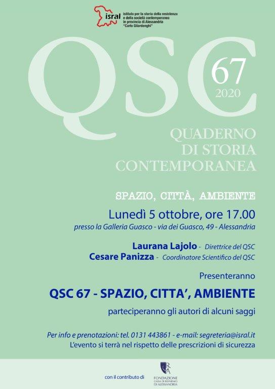 Lunedì 5 ottobre presso la sala mostre di Palazzo Guasco (via Guasco 49) alle ore 17 verrà presentato il 67° Quaderno di storia contemporanea, edito grazie al contributo della Fondazione Cassa di Risparmio di Alessandria.