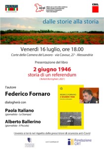 La rassegna estiva dell’Isral Dalle storie alla storia torna in Alessandria per la presentazione del volume di Federico Fornaro, 2 giugno 1946. Storia di un referendum (Bollati Boringhieri, 2021).