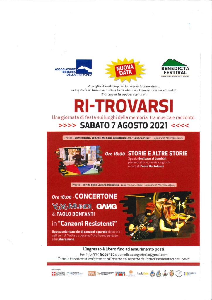 Ri – trovarsi: sabato 7 agosto 2021 sarà recuperato l’evento del Festival Benedicta, rinviato nel mese di luglio per il maltempo.