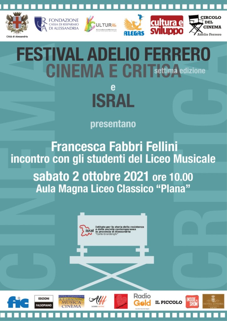 La signora Fabbri Fellini incontrerà gli studenti del Liceo Musicale presso l’Aula Magna del Liceo “Plana” e proietterà il suo cortometraggio Le Fellinette, vincitore del Premio Speciale Nastri d’Argento 75 e ispirato a un disegno che Fellini stesso aveva fatto nel ’71 sulla spiaggia di Rimini.