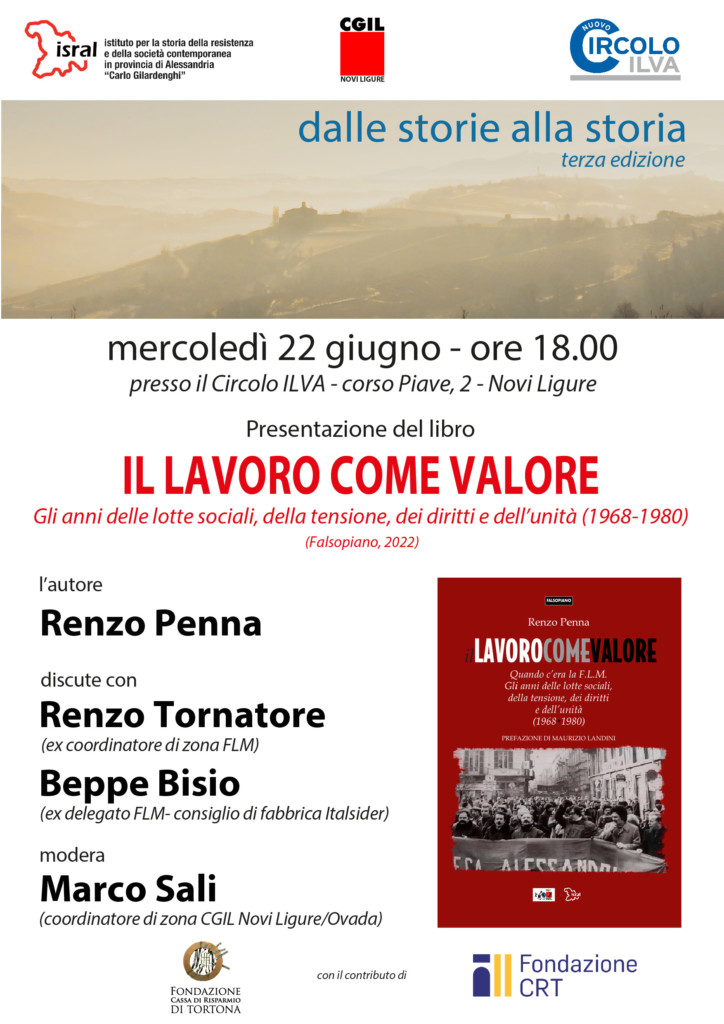 Con l’autore dialogheranno Renzo Tornatore, ex coordinatore di zona FLM, Beppe Bisio, ex delegato sindacatale FLM, consiglio di fabbrica Italsider. Modera Marco Sali, coordinatore di zona CGIL Novi -Ovada.