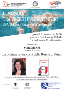 Mara Morini (Università di Genova) parlerà de La politica revisionista della Russia di Putin.