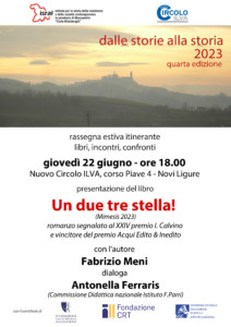 La rassegna estiva dell’Isral di libri, incontri, confronti, Dalle storie alla storia prosegue giovedì 22 giugno a Novi Ligure, alle ore 18, al Nuovo Circolo ILVA di corso Piave 4, con la presentazione del libro di Fabrizio Meni Un due tre stella! (Mimesis, 2023)