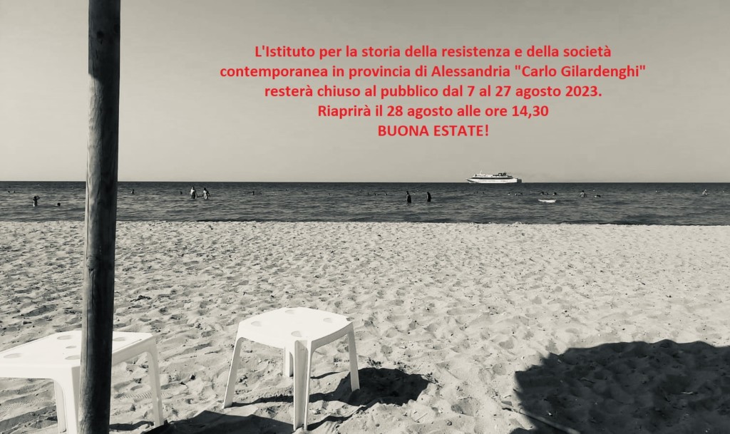 L’Istituto per la storia della Resistenza e della società contemporanea in provincia di Alessandria “Carlo Gilardenghi” resterà chiuso per la pausa estiva dal 7 al 27 agosto 2023. Riaprirà lunedì 28 agosto alle ore 14,30.