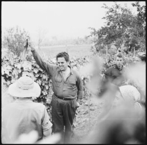 Alan Lomax nelle vigne di Moncalvo durante la ricerca del 1954
