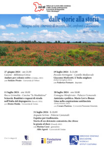 Per il quinto anno consecutivo l’Isral organizza la rassegna estiva di libri, incontri e confronti Dalle storie alla storia, che porta nel territorio alessandrino storie di uomini e donne che hanno dato il loro contributo alla grande Storia. Le presentazioni saranno occasione di confronto e discussione su snodi della storia, con attenzione ai temi del presente.