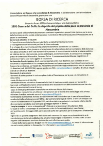 La ricerca utilizzerà i fondi documentari presenti nell’archivio dell’Isral e dell’Associazione per la pace e la non violenza di Alessandria.