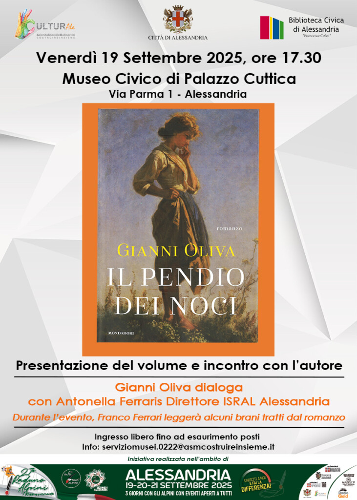 Si segnala la presentazione del libro di Gianni Oliva, Il Pendio delle noci, presso il Museo Civico di Palazzo Cuttica in via Parma 1 ad Alessandria il giorno 19 settembre alle ore 17,30. Con l’autore dialogherà Antonella Ferraris, Direttore Isral di Alessandria