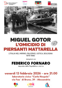 Venerdi 13 febbraio 2026 alle ore 21.00, L’Isral e Cgil – Alessandria organizzano presso Laboratorio Civico “Carla Nespolo”, via Faà di Bruno, 39, Alessandria, la presentazione del volume di Miguel Gotor, L’Omicidio di Piersanti Mattarella: l’Italia nel mirino: Palermo, Ustica, Bologna 1979-1980. Dialogherà con l’autore Federico Fornaro (storico e deputato della Repubblica).