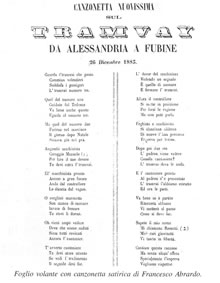 Autore di queste composizioni è un bello spirito fubinese, il carradore e mediatore di vini Francesco Abrardo (1848-1925), singolare figura di poeta di popolo attento a registrare gli umori della gente e a farsene portavoce in “cantacronache” efficaci e pungenti, che in paese molti anziani ancora ricordano e canticchiano con gusto.