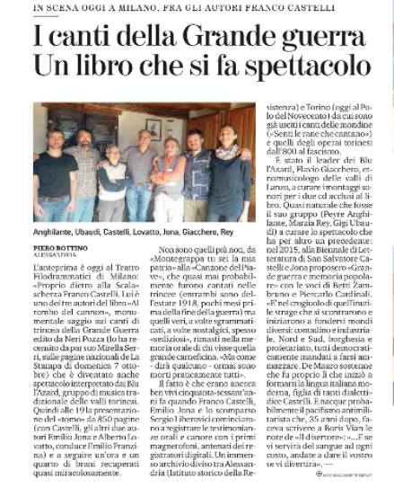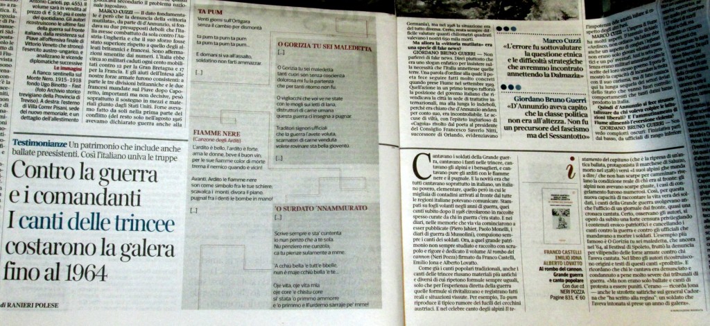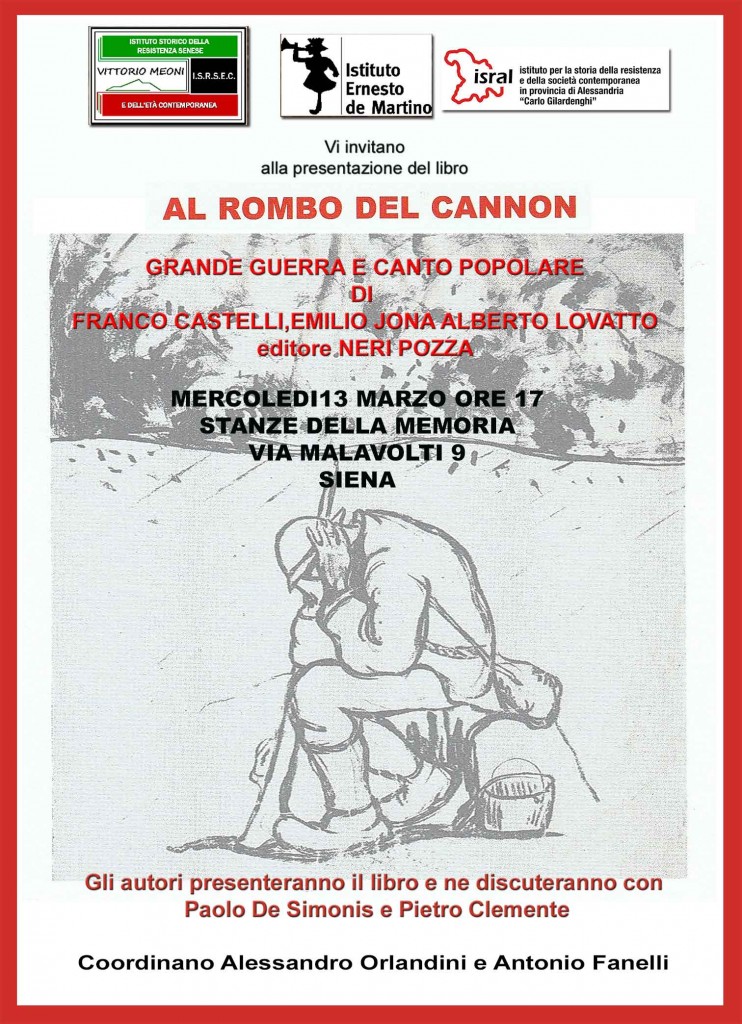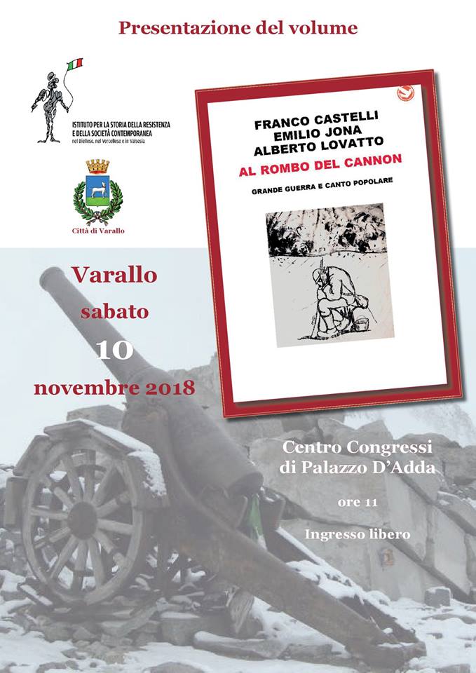 Il volume di Franco Castelli, Emilio Jona, Alberto Lovatto, Al rombo del Cannon. Grande Guerra e Canto popolare, Donzelli, ha ricevuto recensioni prestigiose ed è stato presentato con successo a Milano (al teatro dei Filodrammatici il 18 ottobre 2018, con il commento musicale dei Blu L’Azard, e successivamente, tra le altre, a Varallo e a Rovereto, a Roma a Torino e tra breve anche a Firenze e Siena ).