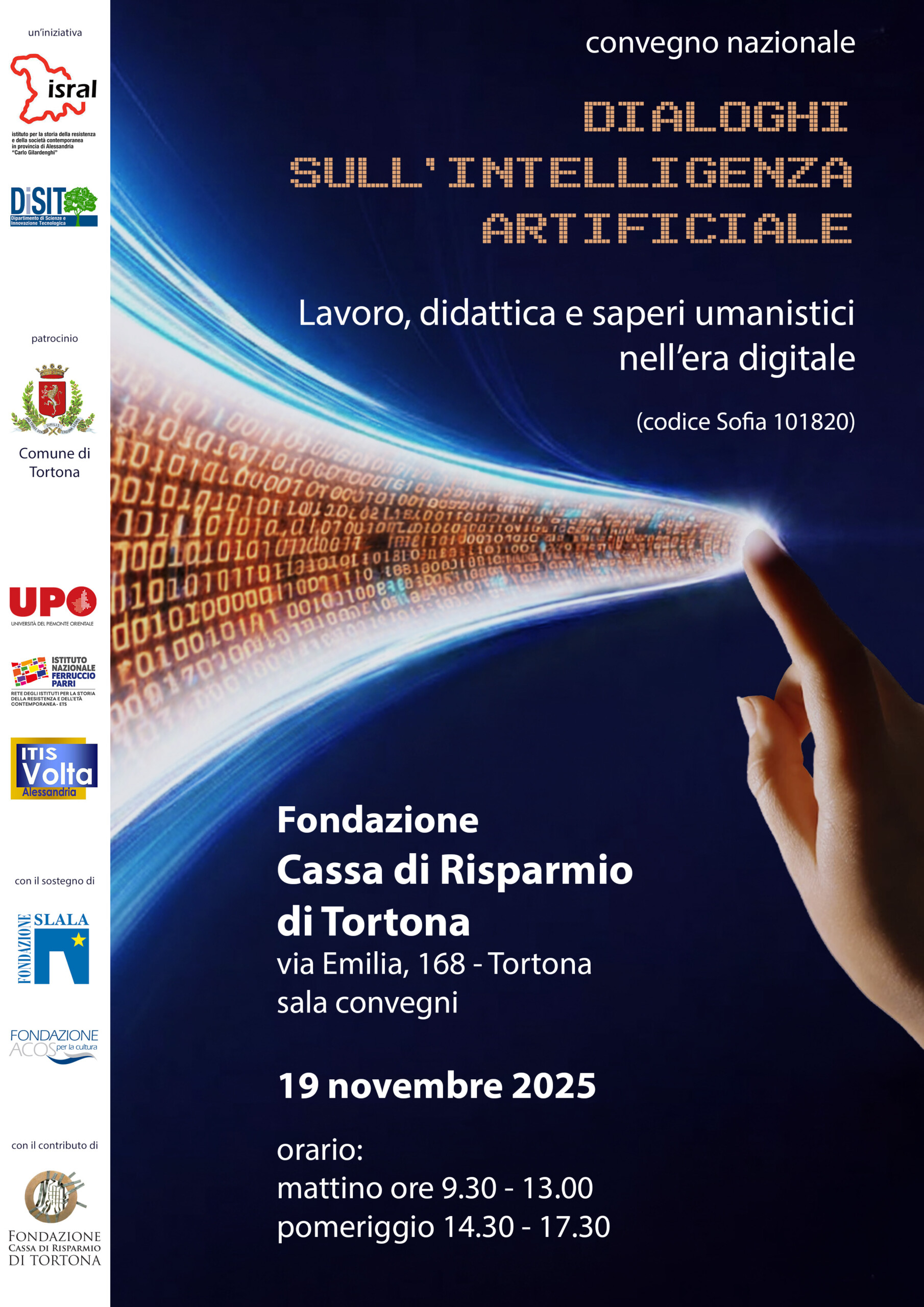 Il convegno si svolgerà a Tortona, Sala convegni Fondazione Cassa di Risparmio di Tortona, il 19 novembre 2025, secondo il seguente programma