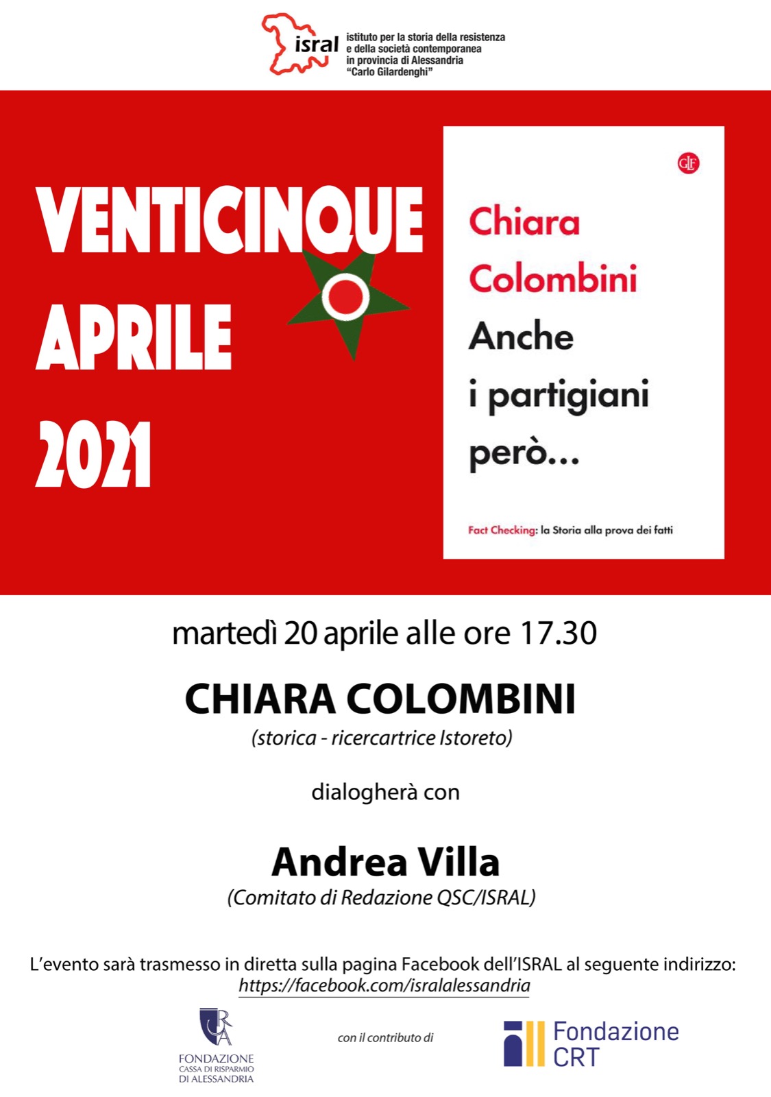 Martedì 20 aprile alle ore 17,30 Chiara Colombini, storica, ricercatrice presso l’Istoreto presenterà il suo libro Anche i partigiani però… (Laterza 2021): un’occasione di confronto e approfondimento per le celebrazioni del 25 aprile 2021. Sarà in dialogo con lei Andrea Villa del Comitato di redazione di QSC.