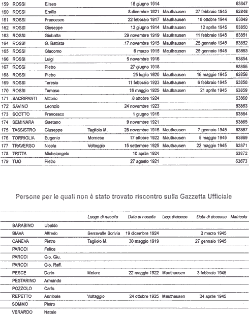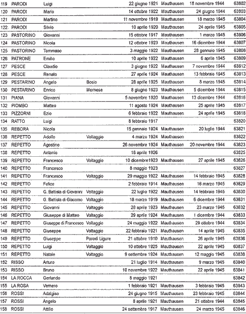 Lista dei caduti della Benedicta deportati e deceduti nei Lager, a cura di Monica Meregaglia