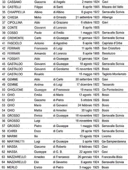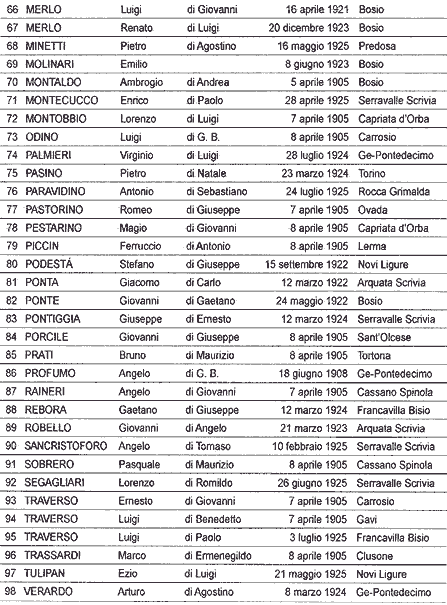 Lista dei caduti della Benedicta fucilati nei pressi del cascinale, a cura di Monica Meregaglia.