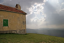 Tornati sul crinale della strada provinciale 146 poco oltre il Km 2 che funge da spartiacque tra le valli Borbera e Spinti si prosegue a piedi in direzione Camere Vecchie sino a giungere nell’ultimo tratto in piano alle “trincee” sulla destra. Si trattava di un rudimentale scavo a scopo difensivo costruito da partigiani aiutati da giovani della zona, con lo scopo di avvistamento e difesa verso Isola del Cantone (GE) da cui provenivano abitualmente incursioni nemiche.