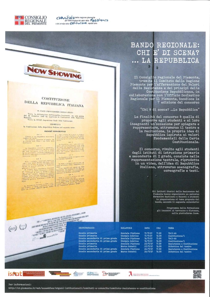 Un secondo Progetto del Comitato resistenza e Costituzione del Consiglio Regionale del Piemonte con la rete degli Istituti piemontesi vede la luce quest’anno: “Chi è di scena?… La Repubblica”