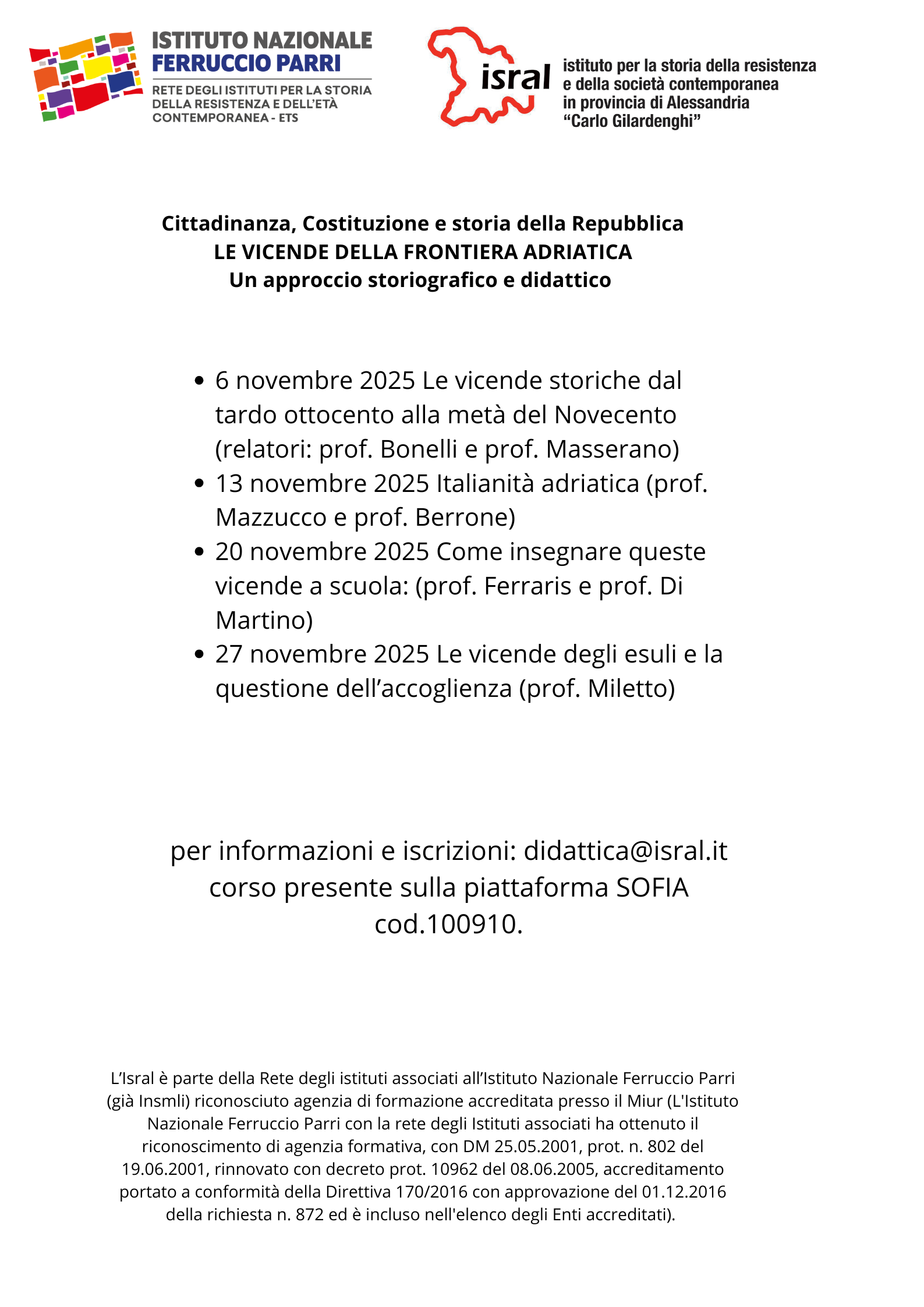 Corso di formazione “LE VICENDE DELLA FRONTIERA ADRIATICA Un approccio storiografico e didattico “