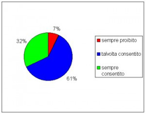 In particolare appare ampia la discrezionalità dei ragazzi nell’ambito delle scelte di vita quotidiana: 17 su 18 sono liberi di uscire la sera con la frequenza che ritengono opportuna; 15 su 18 possono trascorrere le vacanze con amici d’ambo i sessi e infine 14 su 18 possono tenere animali in casa.