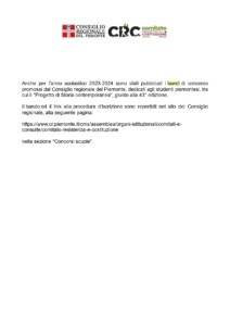La scadenza per l’iscrizione alla 43° edizione del Progetto di Storia contemporanea (Comitato Resistenza e Costituzione) è stata prorogata a venerdì 27 ottobre 2023.