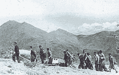 Trasporto a valle delle bare dei martiri della Benedicta (maggio 1945)